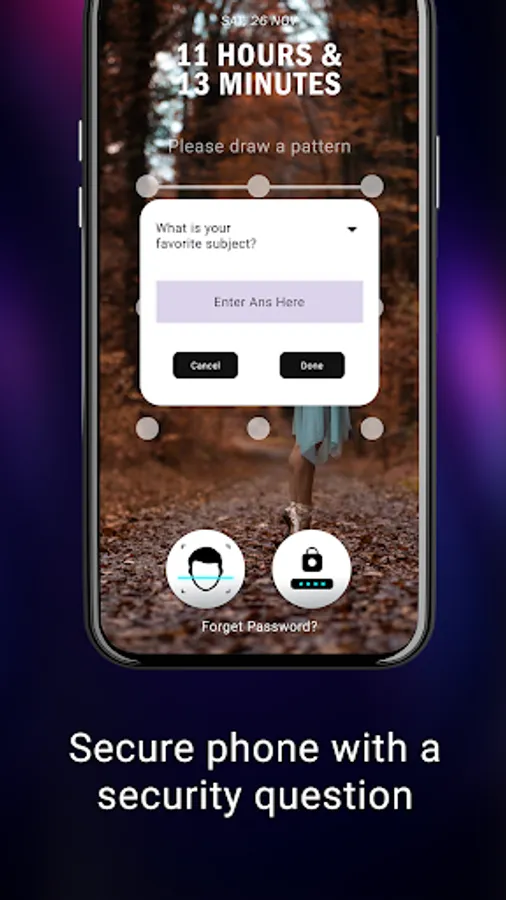 A lock screen with face password. You can lock and unlock mobile lock screen with following passwords :