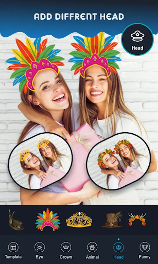 - Add face stickers like - man hairstyle, women hairstyle, mustache, doggy face stickers, turban or caps, other accessories.