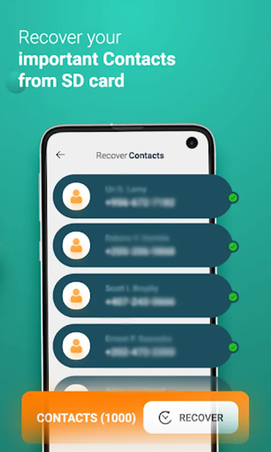 Recover your deleted files, apps, videos, images, music files, contact list, document, etc from SD Card.