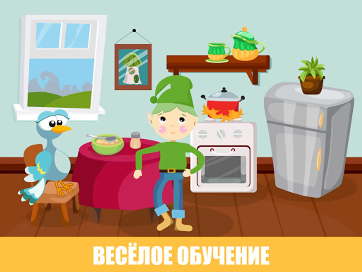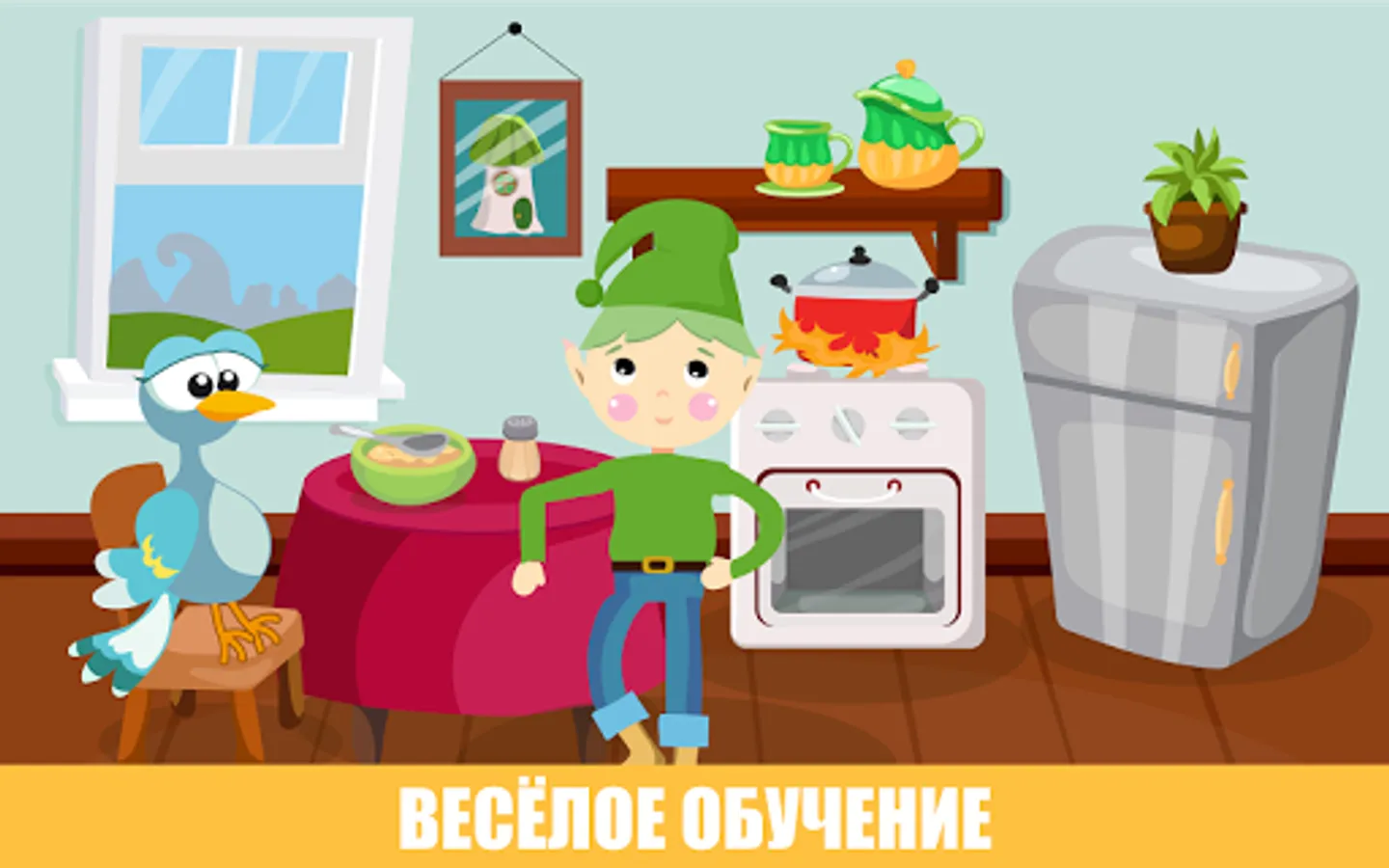 The second block of the educational game consists of fun games to consolidate the acquired knowledge. The kid looks for colors in pictures, helps the birds find their houses, sorts vegetables and fruits, arranges flowers in vases, learns to mix colors and other tasks. Games make preschool learning fun.