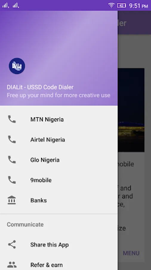 DIALit will help you dial Nigeria USSD codes so you won't need to memorize them thereby free up your mind for more creative and productive use. When you need to top up your airtime, buy data, subscribe to prepaid electricity or cable TV just by tapping the buttons on the app, you will be able to do so fast.