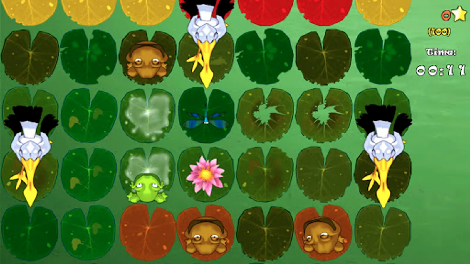 Navigate your frogs on the other side of the pond without getting eaten by the storks and collect all the goodies along the way!