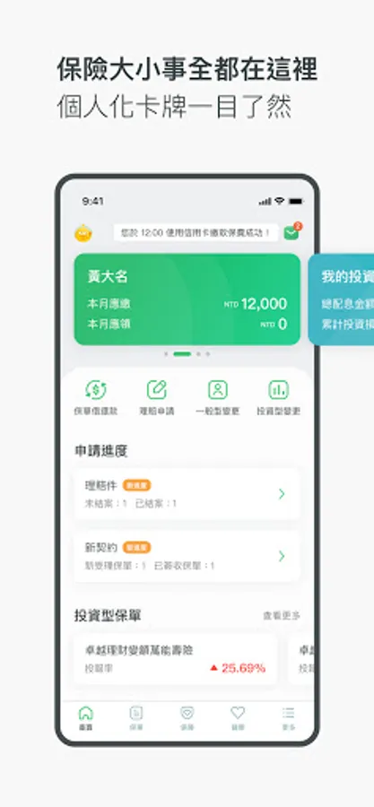 Cathay Life App makes it easy to keep track of your insurance policies, pay bills, apply policy loan, or change your policy contents (such as change contact address, change the funds within your policy, etc.).