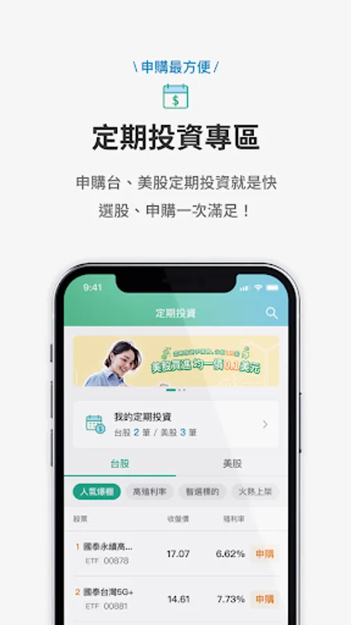 6. Fixed investment area: regular investment in Taiwan and U.S. stocks, one-stop stock selection and purchase, and the industry's first regular fixed quota for Taiwan stocks "Smart Addition and Subtraction", to help you pick up bargains and seize good opportunities!
