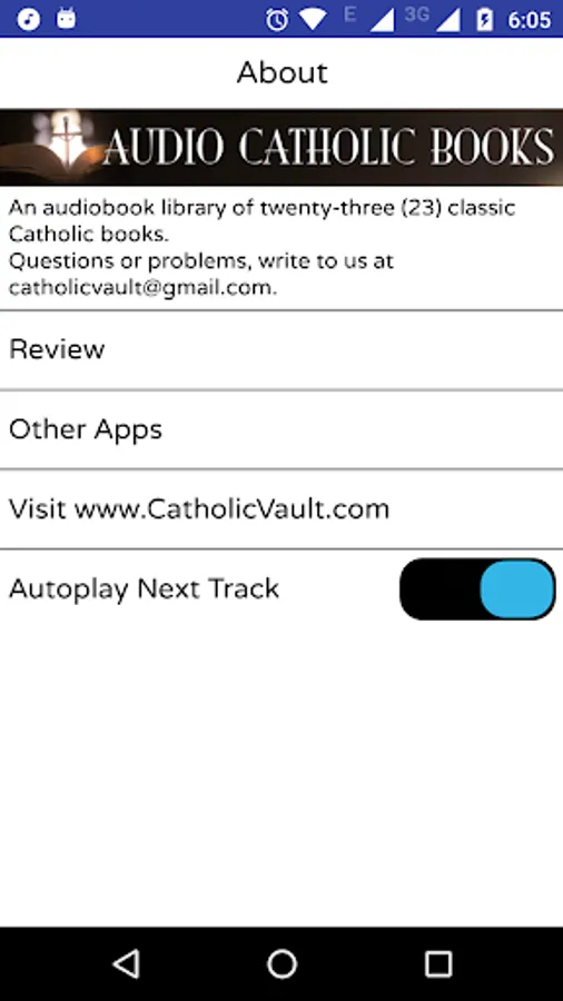 To learn more about our other audio apps, or to download our MP3 libraries, visit www.CatholicVault.com. Contact us at catholicvault@gmail.com.