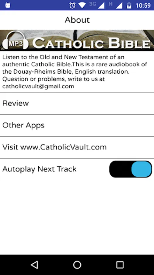 Rare audiobook version of the classic Catholic bible, the Douay-Rheims Bible translation of St. Jerome from the Latin Vulgate in the 16th Century. For over 300 years, this Bible was the only Catholic English translation of Scripture used. Still considered one of the most faithful and relevant Catholic Bible translations today. Adding to this treasure is the male British accent of the reader. It's an old recording digitally transferred from cassette tapes.