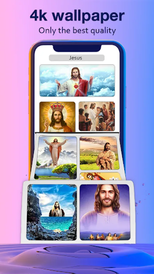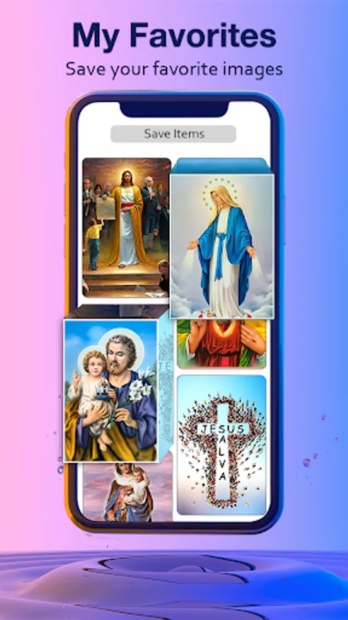 The Catholic App - St. Mary, Jesus Wallpapers HD, 4K is a free Catholic saints’ wallpaper app. This application is a treasure trove of beautiful, unique Catholic images with a high-resolution of up to 4K for you to freely choose and set as your lock screen wallpaper, providing you with a sense of peace and happiness, as well as protection from the saints. Furthermore, you can unlimitedly download any saint’s images you want on your phone and create unique photo albums of Catholic deities in your device’s gallery. Share beautiful photos with family and friends. It's great, isn't it?