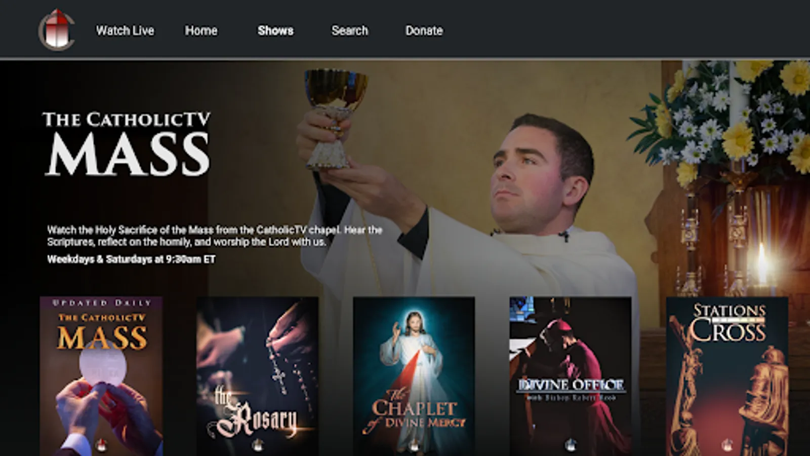 The first Catholic TV station in the world, the CatholicTV Network offers Faith-filled, family-friendly programming 24 hours a day. Watch original CatholicTV programming including our Daily Mass, Rosary, Divine Mercy Chaplet, talk shows and entertainment programs, as well as Vatican programming and content from around the country. Watch it LIVE or On Demand. Either way, it's all for YOU!