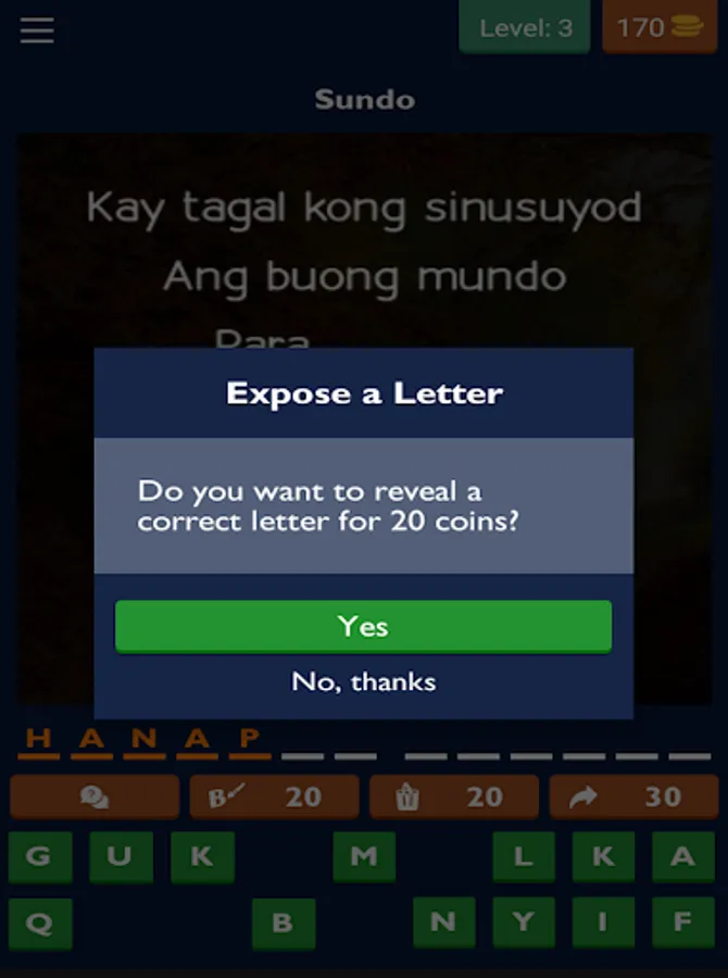 Show a Letter: Can't crack a challenging blank? Reveal a single letter to help you out.