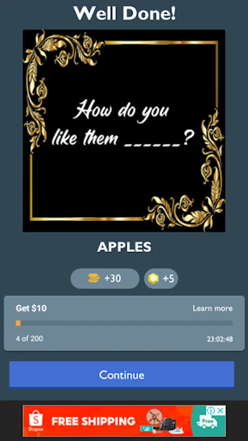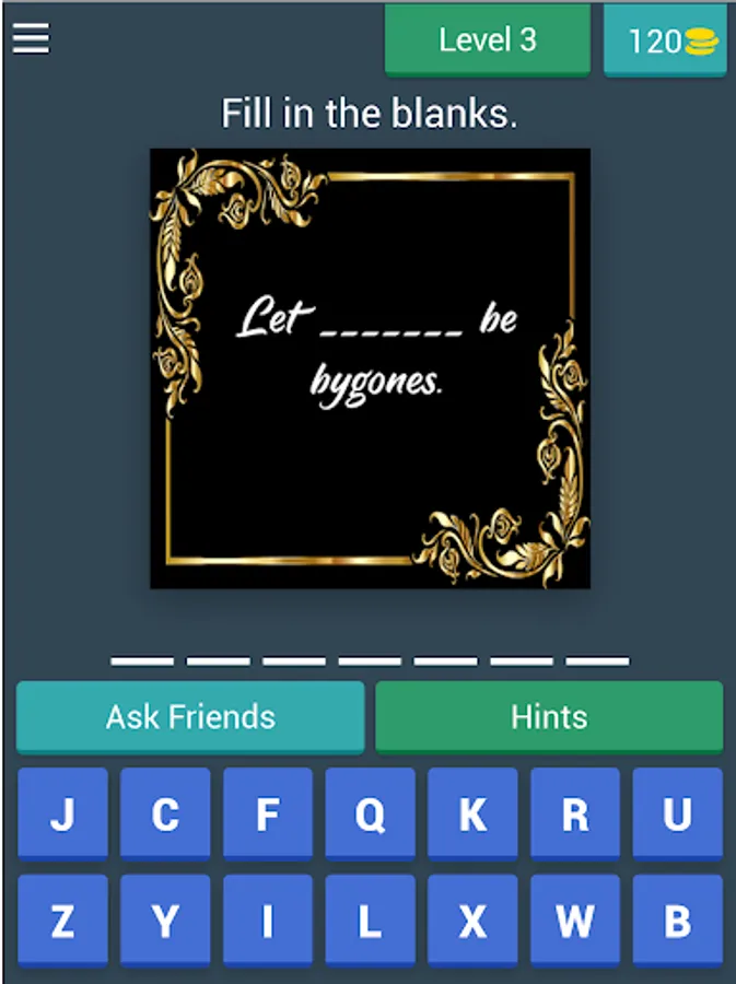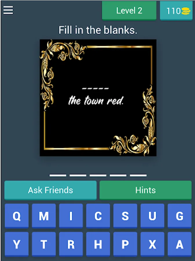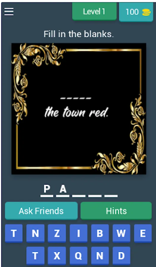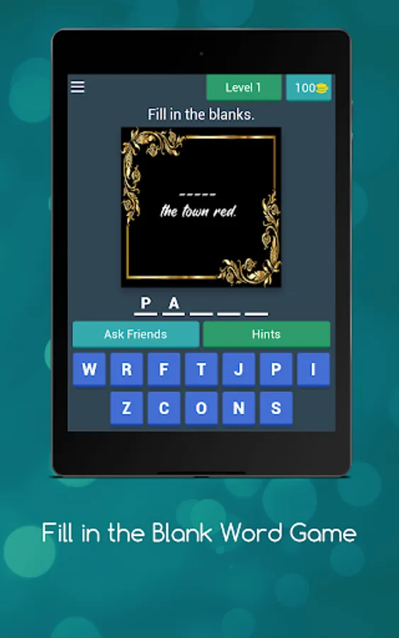 The Fill in the Blank Word Game is an exciting challenge where your objective is to guess the missing word in each level's given phrase. You'll be provided with 14 letters, and it's up to you to select them in the correct order to spell out the right answer. For every correct guess, you'll earn coins as a reward. If you find yourself stuck on a level, don't worry! You can use hints to help you out, although they will cost you some coins.