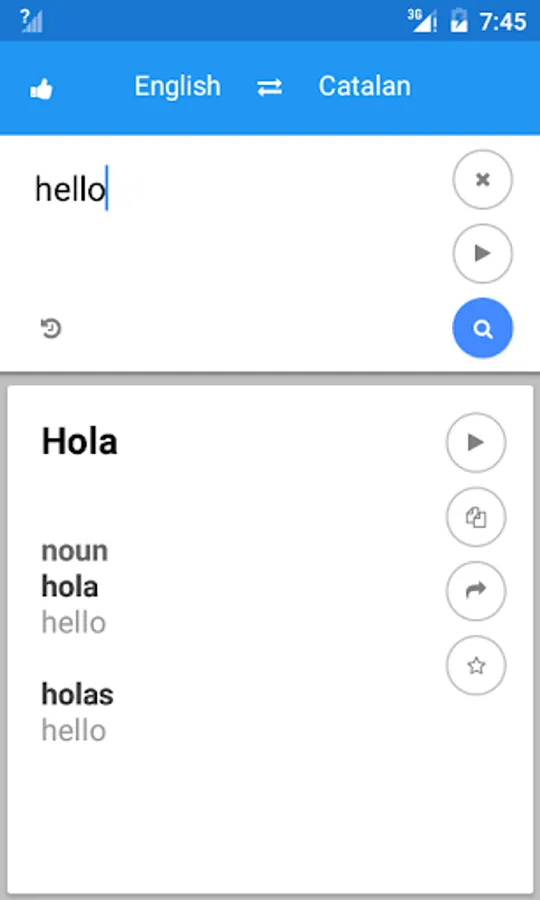 • Translate between Catalan and English by enter the phrase and sentence, or paste clipboard contents.