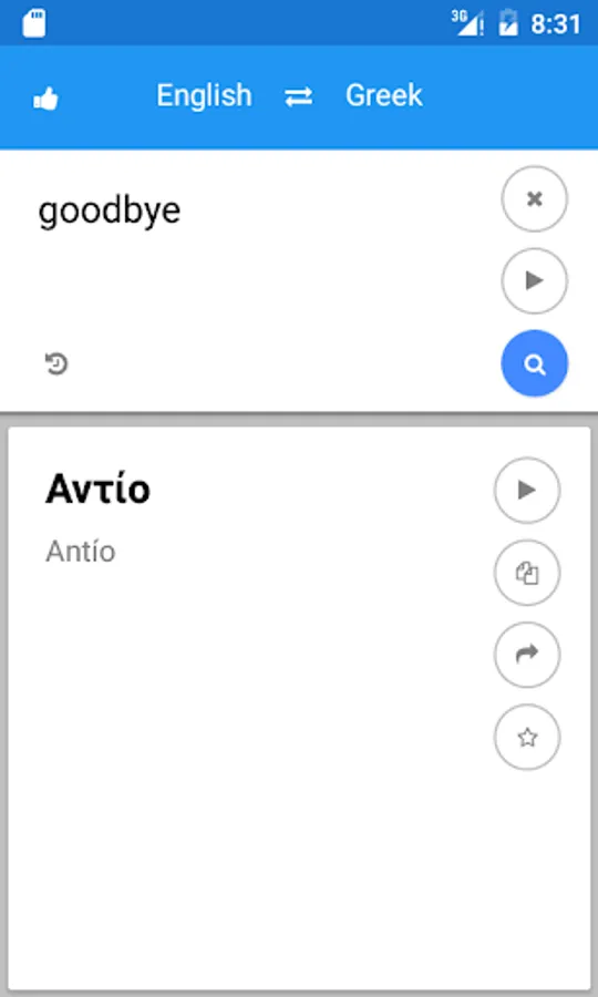 • Translate between Greek and English by enter the phrase and sentence, or paste clipboard contents.