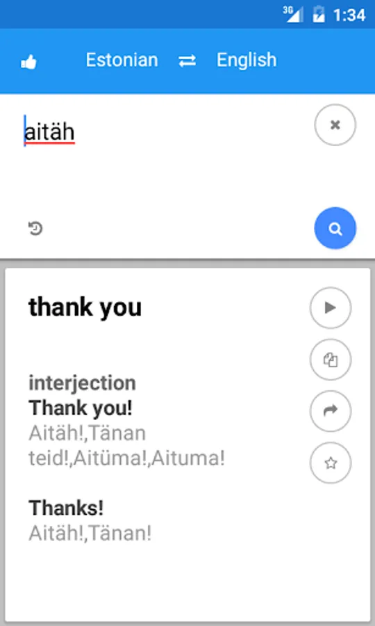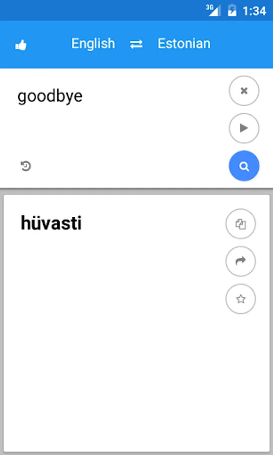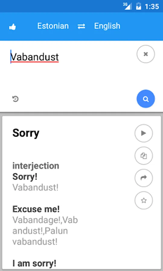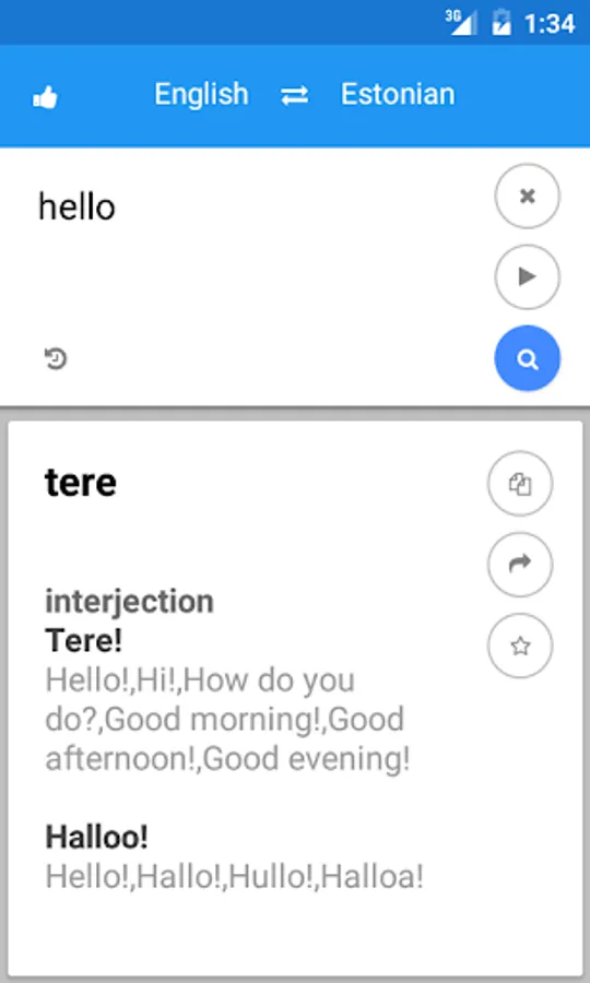 • Translate between Estonian and English by enter the phrase and sentence, or paste clipboard contents.