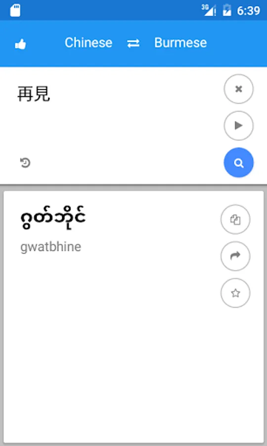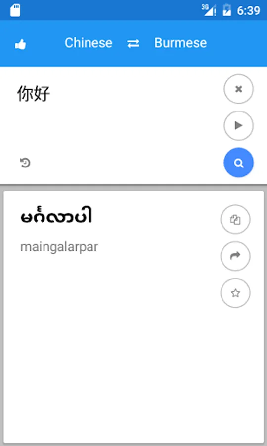 • Translate between Myanmar and Chinese by enter the phrase and sentence, or paste clipboard contents.