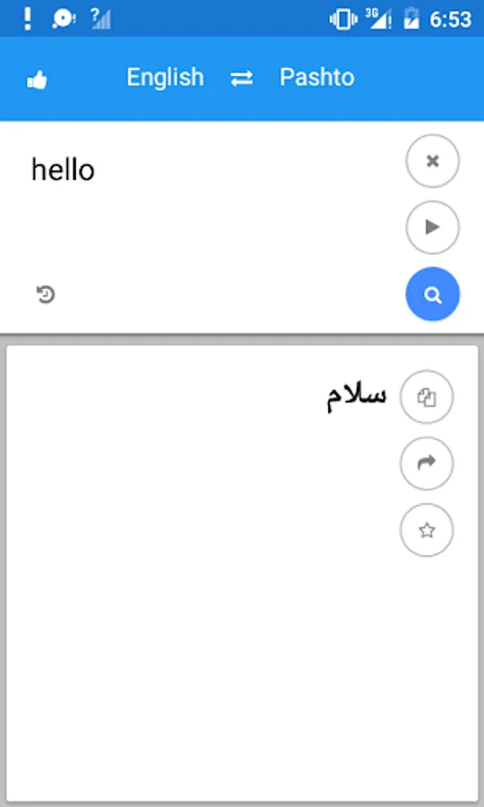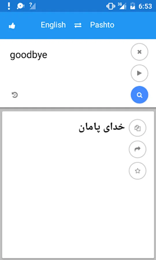 • Translate between Pashto and English by enter the phrase and sentence, or paste clipboard contents.