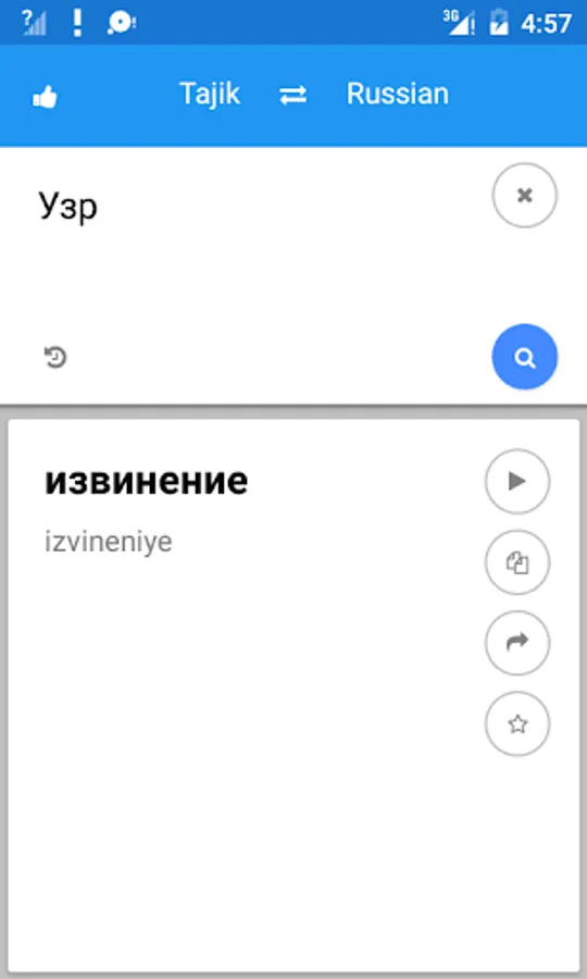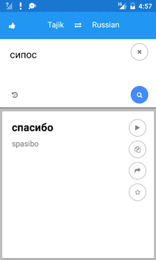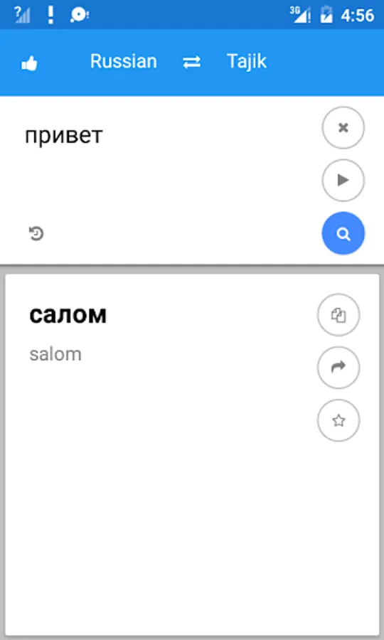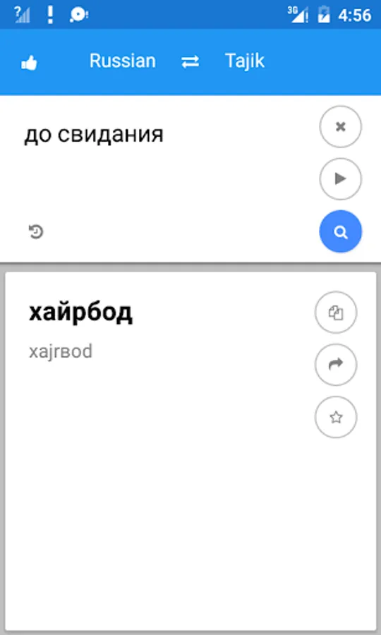 • Translate between Tajik and Russian by enter the phrase and sentence, or paste clipboard contents.