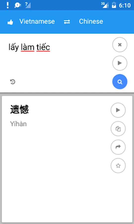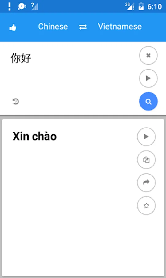 • Translate between Vietnamese and Chinese by enter the phrase and sentence, or paste clipboard contents.