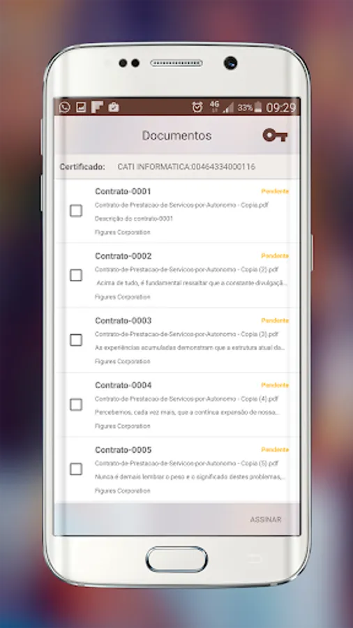 View documents that are pending its signature and choose to sign them or to reject them if they do not agree with the content enviado.Principais Resources