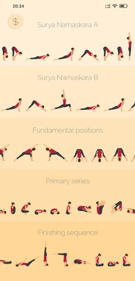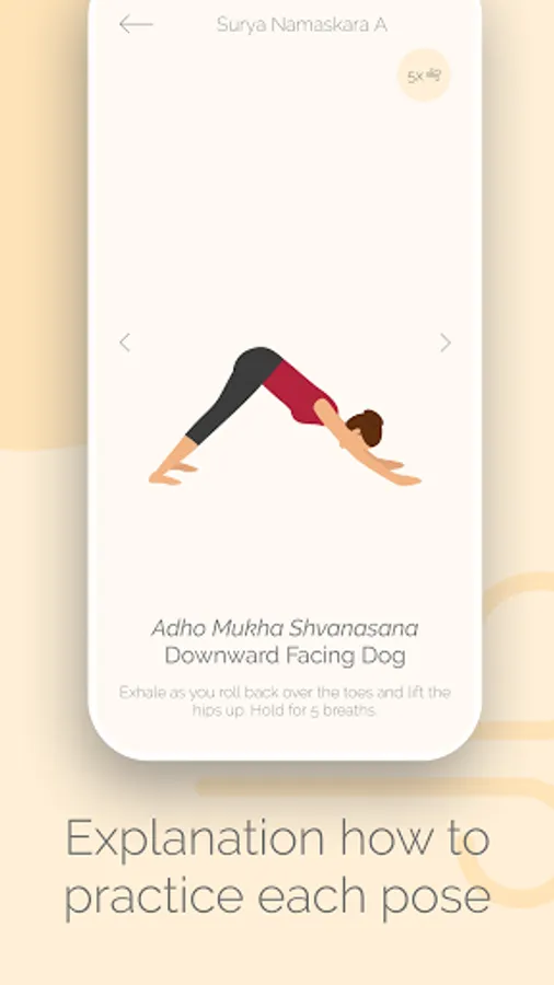 Includes detailed description of each asana including Vinyasa flow indications for proper breathing during practice.