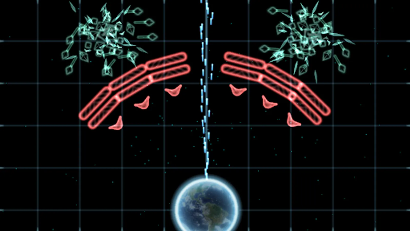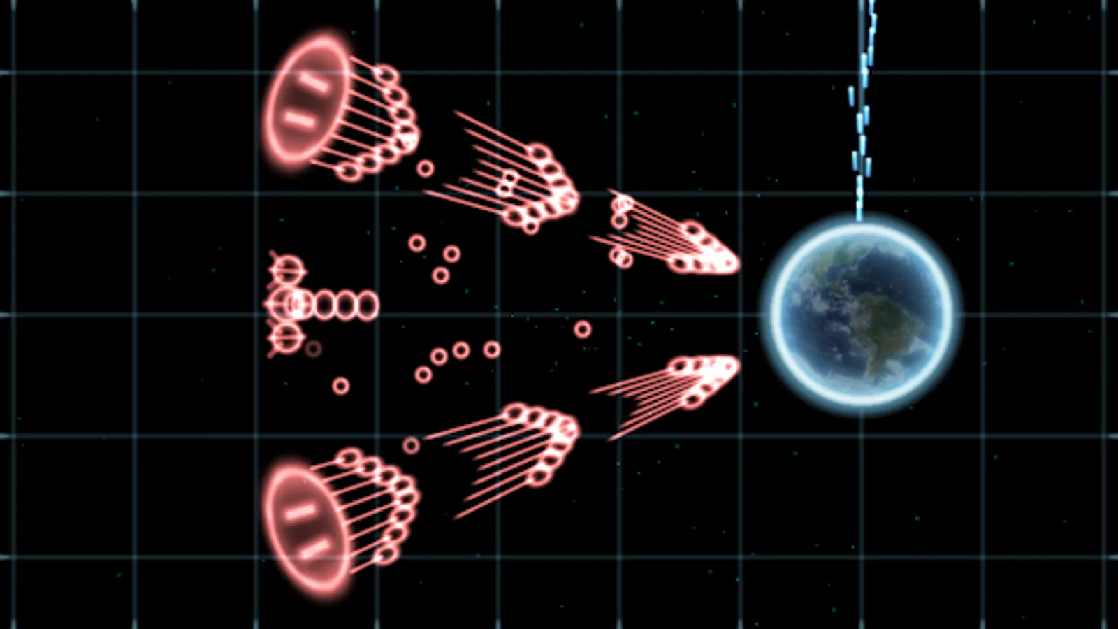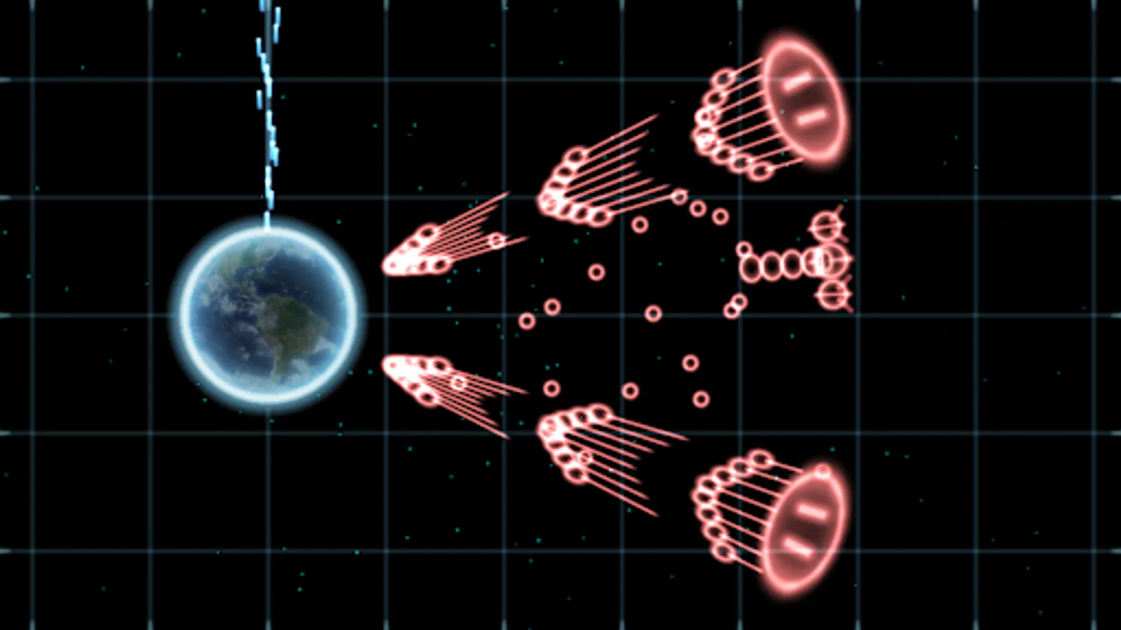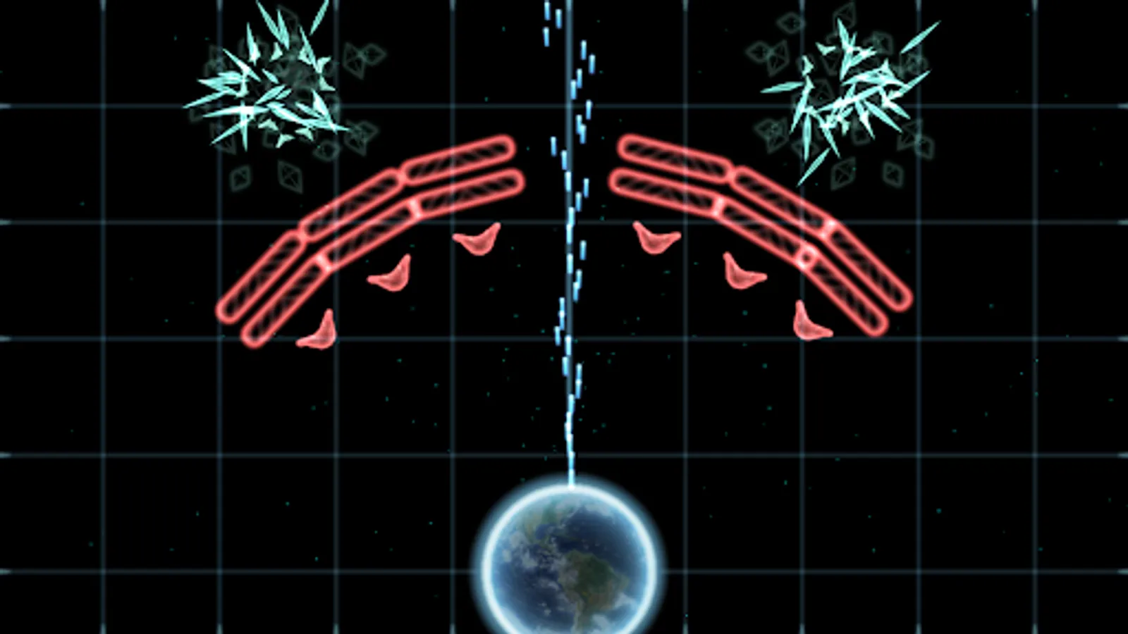 Intense planetary defense arcade action! The Blue planet is in peril - take the fight into your own hands, and blast the evil Red and Green enemies out of the sky with the all-new planet cannon!