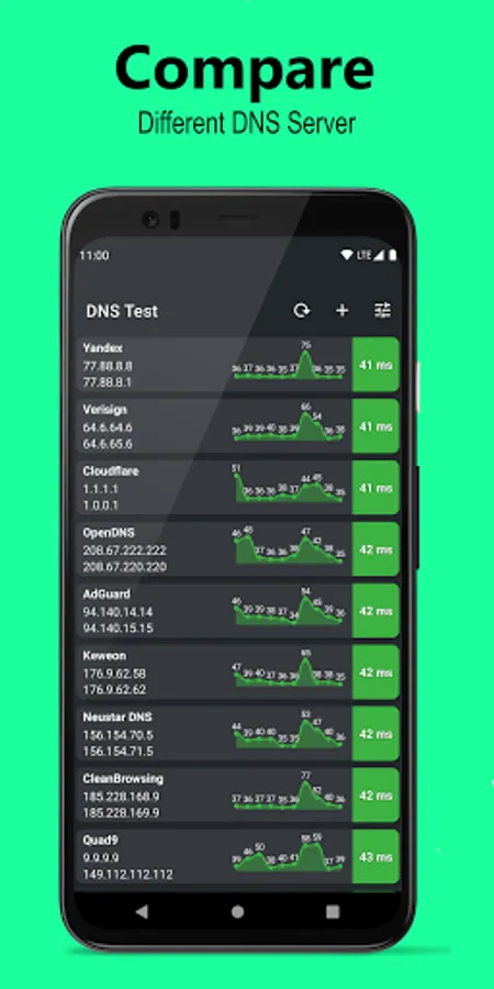 compare Popular DNS servers by displaying the DNS query speed, so you can find out which DNS server is the fastest for your network or smartphone.