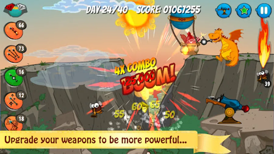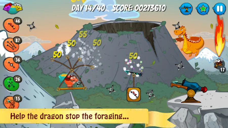 Piggy King is angry, because the treasury is empty! Thiefs of Piggy King have invaded the peaceful Dragon Palace! Pigs are escaping with the treasures, this is bad! Stop those bad thief piggies! Help defend the palace with your arrow gun! Shoot their balloons with several types of special arrows and be a real sniper! Make the evil Piggy King very angry!