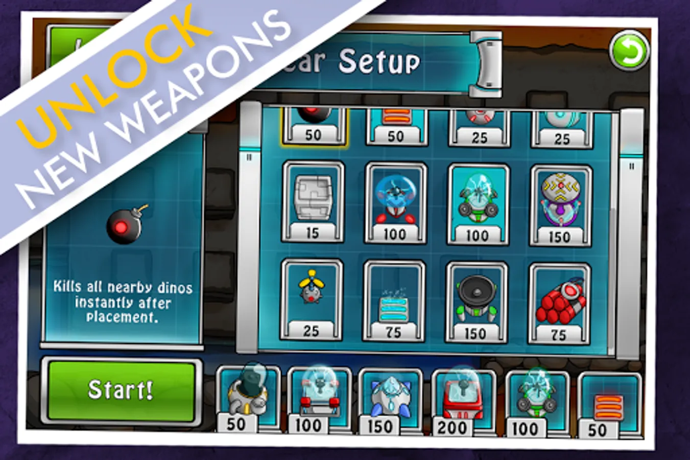 The distinct touch-based control of the arsenal is just one of Dino Zone's many innovative features. Players can reroute dinosaurs with barricades, place traps, make mazes, throw bombs and much more - there's over 20 different unlockable weapons and perks, and more than 30 challenging achievements. That symbiosis between well balanced content and innovative interaction puts tactics and action in a whole new perspective for the genre. Blasting through 35 highly polished levels gets you face to face with dozens of different dinosaur species, each with its own unique behavior. For the more experienced player, trying to survive for as long as possible in one of the four survival arenas assures replay value, and posting the highest scores on the leaderboards tames the need for bragging rights.