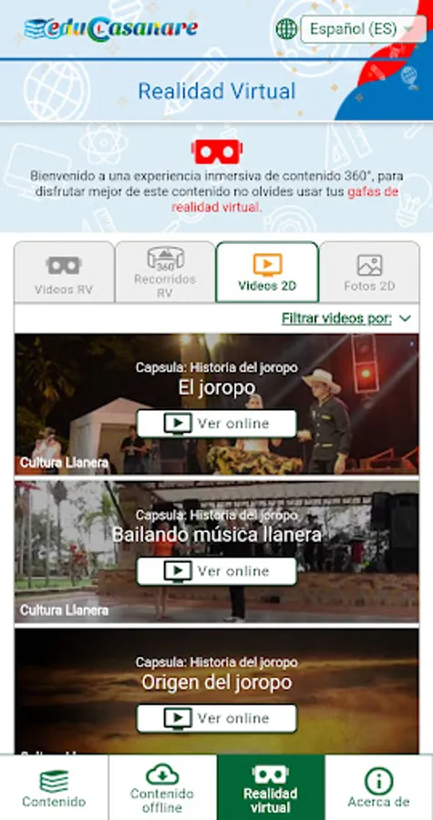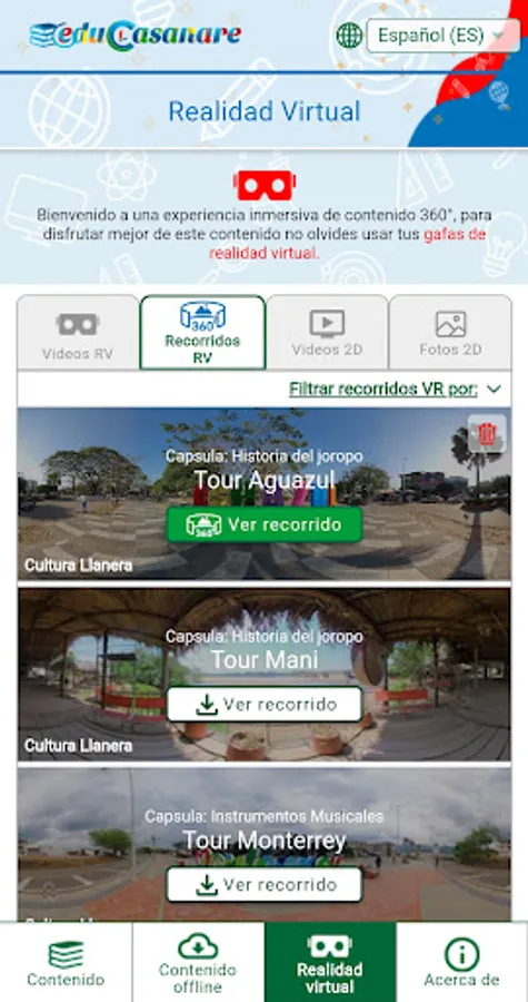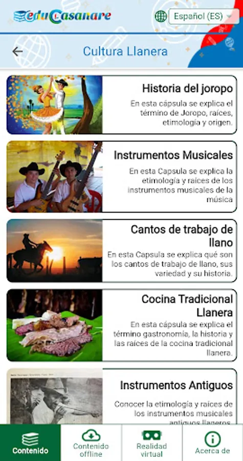 From here you will have access to virtual reality (VR) components for interactive self-learning on Orange themes such as llanera culture, intangible heritage and local entrepreneurship, focused on basic primary, basic secondary and academic middle education.