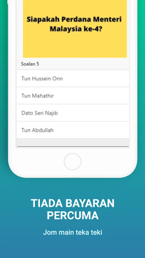 Apps ini menguji samada anda adalah anak jati Malaysia melalui soalan berkaitan sejarah, budaya, dan geografi direka khas untuk rakyat Malaysia.