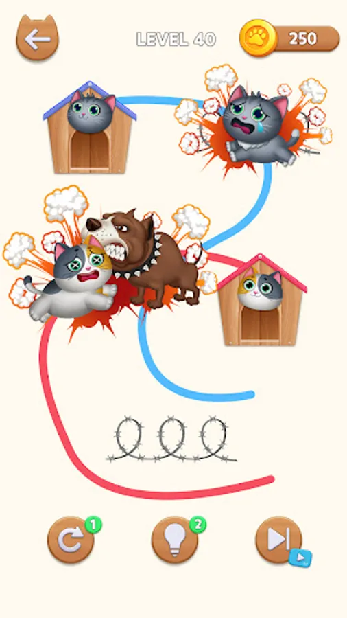 😍Playing the game Cat Rush - Draw to Home is extremely easy, you need to find a way to help the pets return home. Draw a line for the dogs and kittens to find their owners. In this jigsaw puzzle, connect the house and the pet by drawing lines, and bigger animals will rush there. There are some challenges and you have to overcome them to get your pet safely.