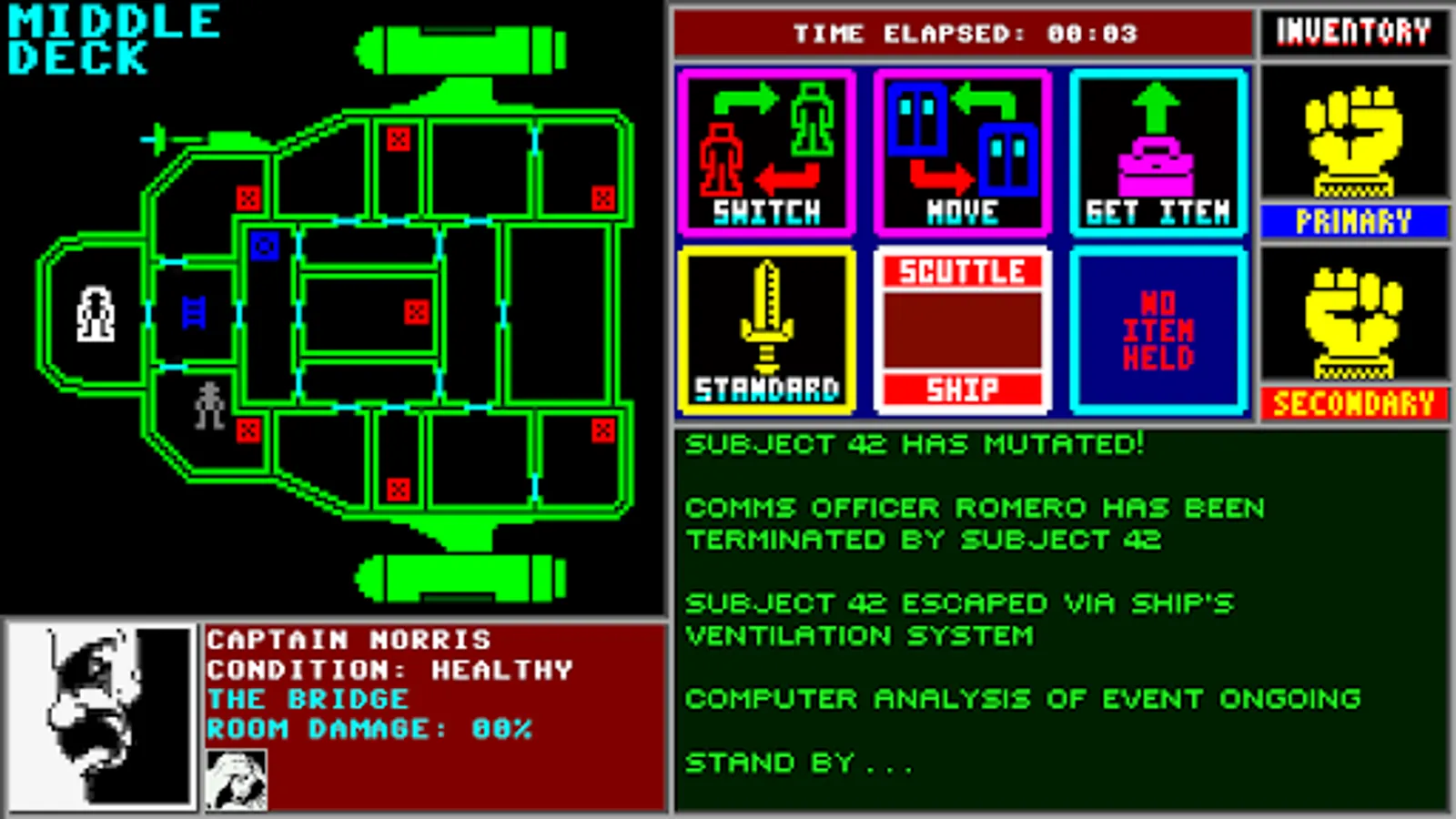 You are the commander of the starship 'Cercopes', a freighter recommissioned as a scientific vessel. An ape designated as Subject 42 is hit by strange cosmic rays during an experiment. Now Subject 42 is faster, stronger and more vicious than any human... and he's out for revenge on your crew!