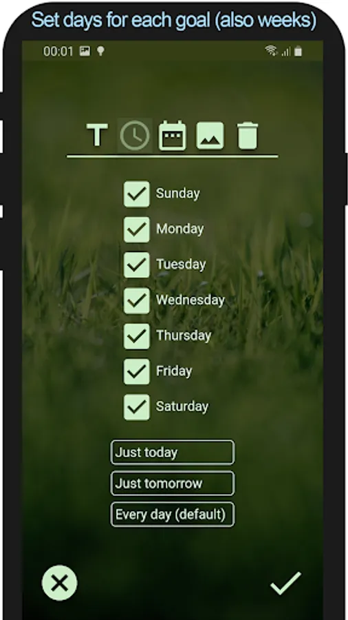 • Quote/Motto. Optionally add a quote/motto/mindset etc. to the app main screen.