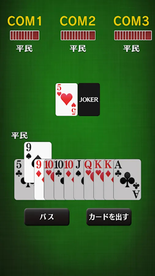 A total of 53 cards are played, including one joker.