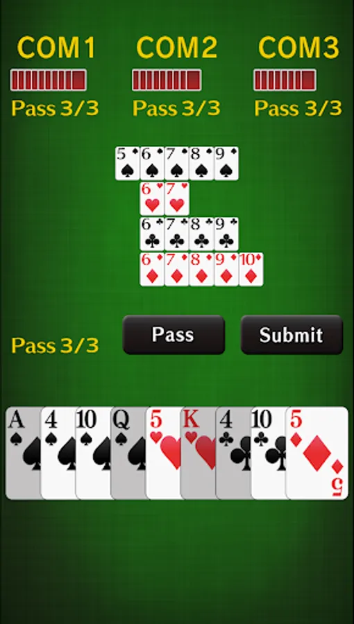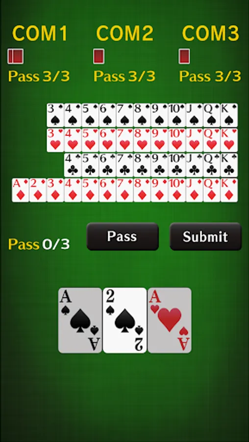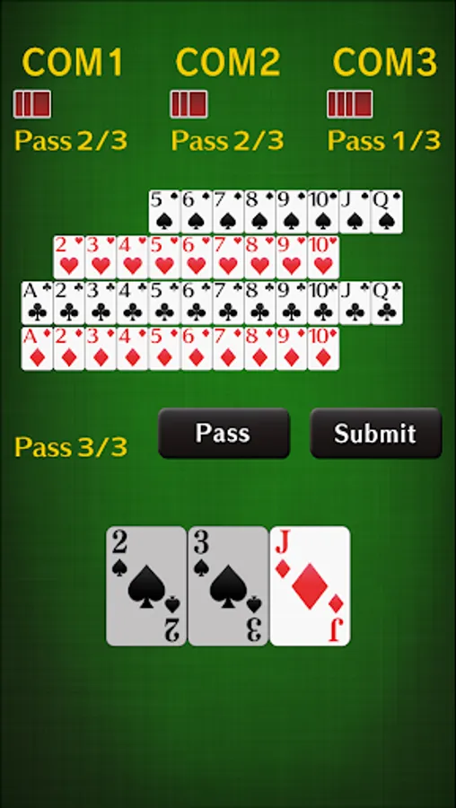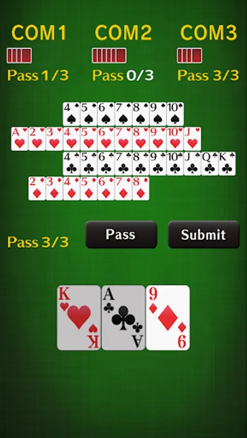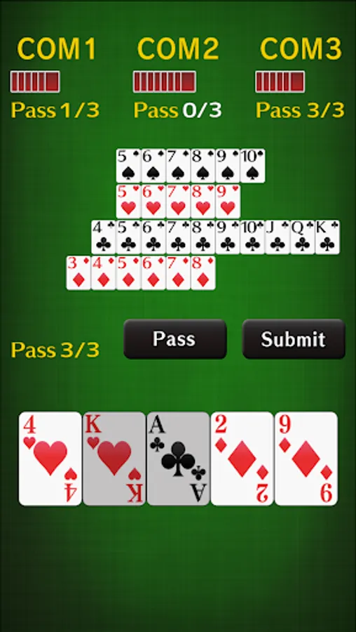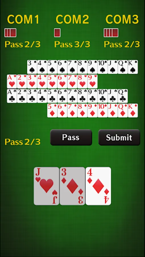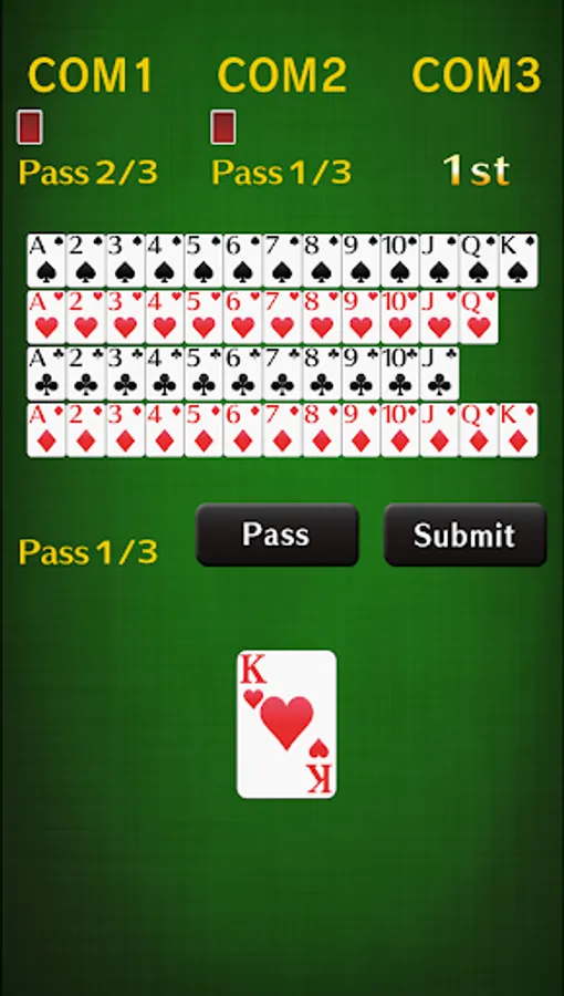 Players play in clockwise order starting with the player who submitted the 7 number of Diamonds card.