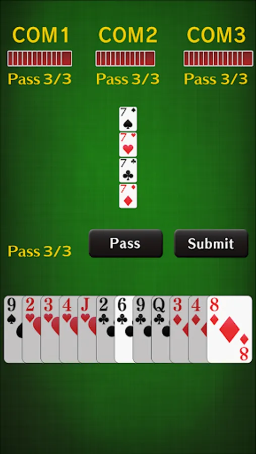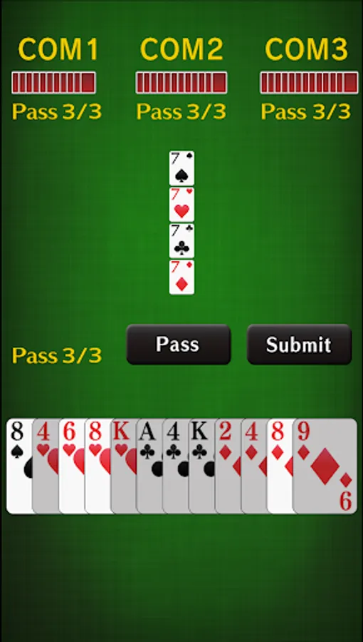 After dealing the cards, submit the 7 number card from each player's hand to the central field.