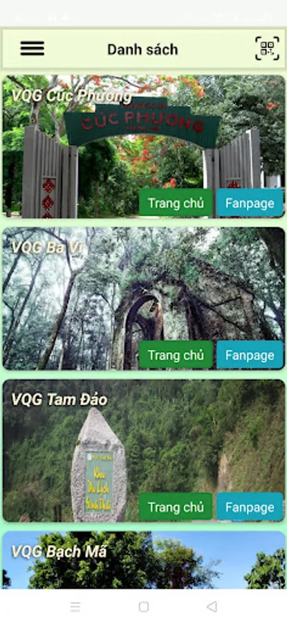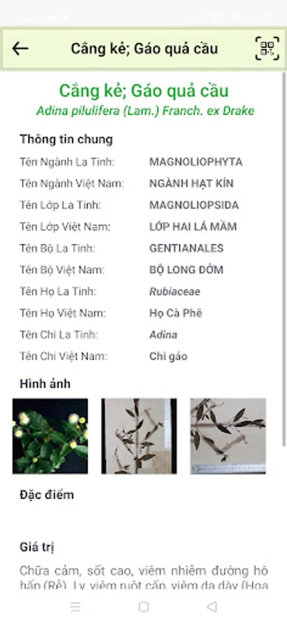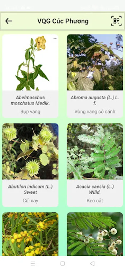 The application supports searching and scanning information codes with QR codes of plant species in 6 national parks of Vietnam.