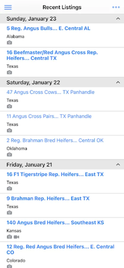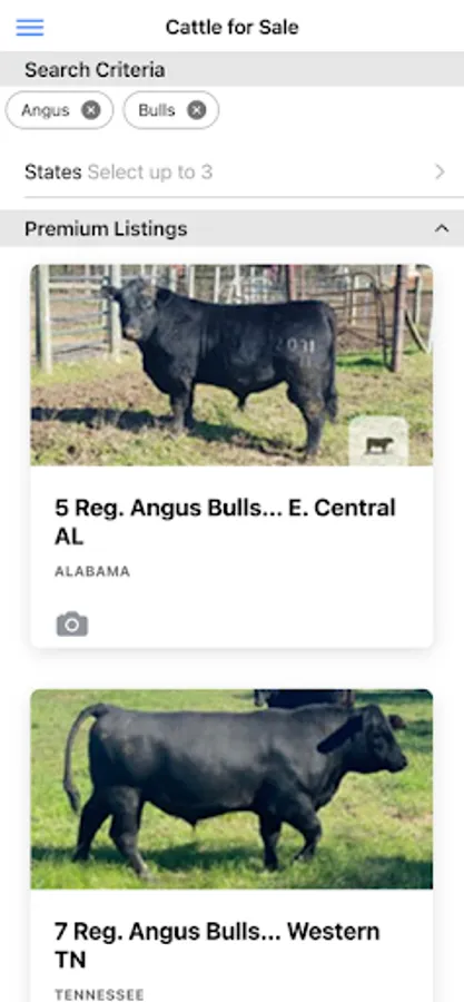 The Cattle Range mobile application offers quick and convenient access into the CattleRange.com listing directory. Search our entire listings database or submit your own listing and media from your mobile device. Listings can be filtered by Cattle Class, Breed, State, or combinations thereof.