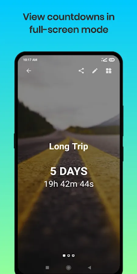 - See your countdowns as full screen card within app