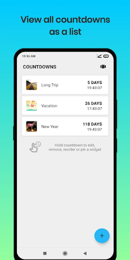 - See all of your countdowns as a list