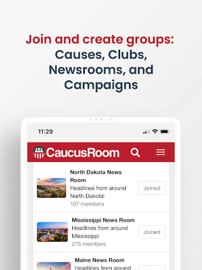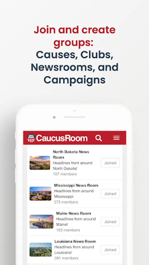 Download CaucusRoom today and connect with other conservatives in your community now! Once you are verified, you will be able to join groups as well as interact with others who you can be sure are real people in your community.