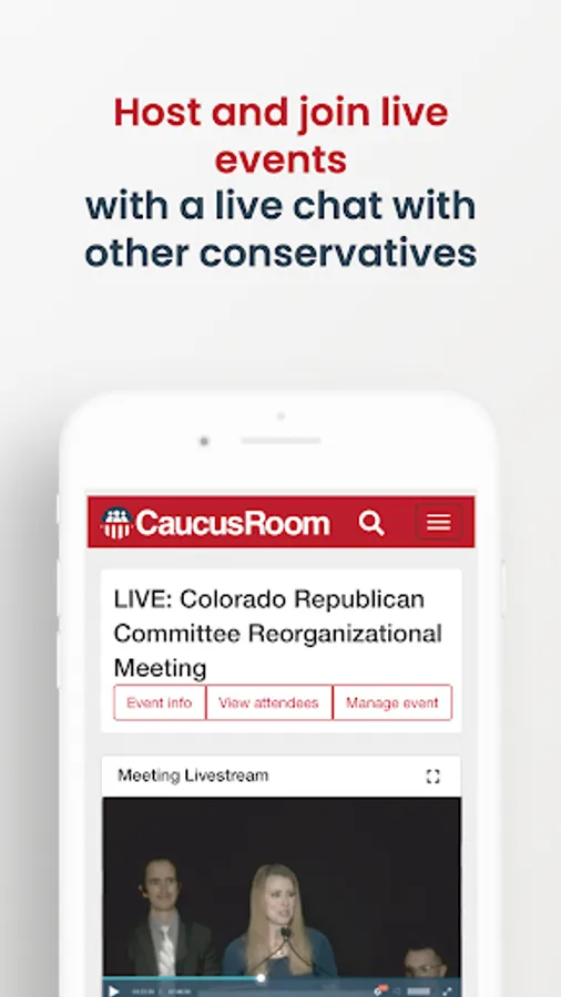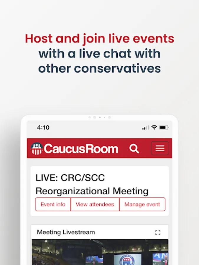 - Attend or host “Virtual Events” of any size right on CaucusRoom! With livechats, and secret-ballot voting/survey capabilities for meeting hosts to build and moderate.