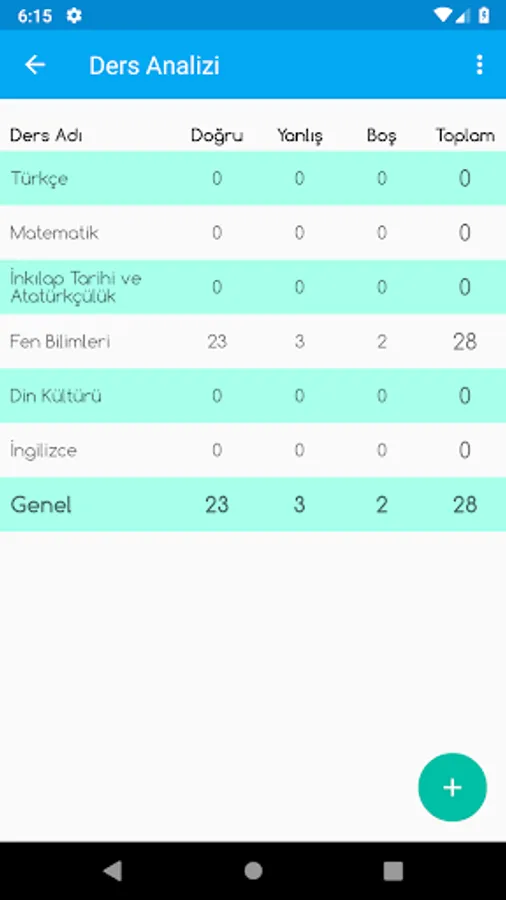 ★ Course Analysis: You can examine the distribution of the questions you solve by lesson. In this distribution, you can see the number of right, wrong, empty and total questions you have solved from all courses. Thus, you can make your work more effective by turning to the lessons you are missing.