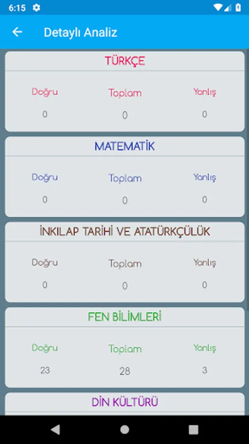★ Detailed Analysis: You can examine the distribution of the questions you solve by subject. In this distribution, you can see the number of right, wrong, empty and total questions you have solved from all subjects. Thus, you can make your work more effective by focusing on the issues you are missing.
