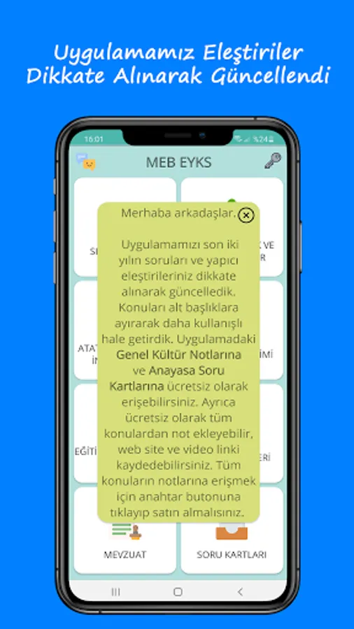Note: We updated our application by considering the questions of the last two years and your constructive criticism. We made the topics more useful by dividing them into subheadings. You can access General Culture Notes and Constitution Question Cards in the application free of charge. You can also add notes on all subjects for free and save web site and video links.