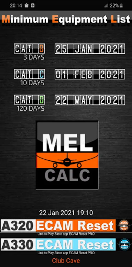 Categories "B", "C" and "D" will be showed instantly, this will prevent mistakes with calculation MEL due date (Airplane MEL expire date).