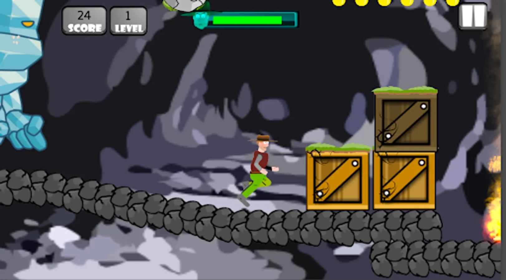 You are the Cave Runner. Watch out, searching for the lost gold of Alcatraz deep in the hidden caves. Work you way through a series of levels increasing in difficulty as you search for the hidden treasure, deep within the maze of caves.