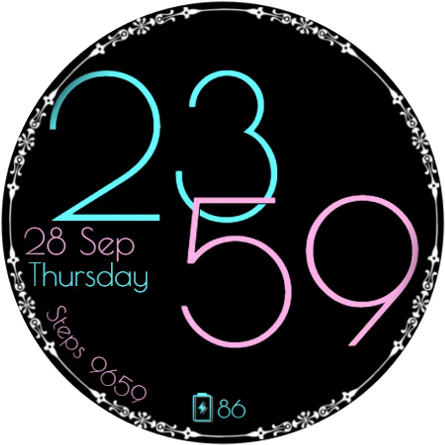 This floral, bright watch face is designed for Wear OS.