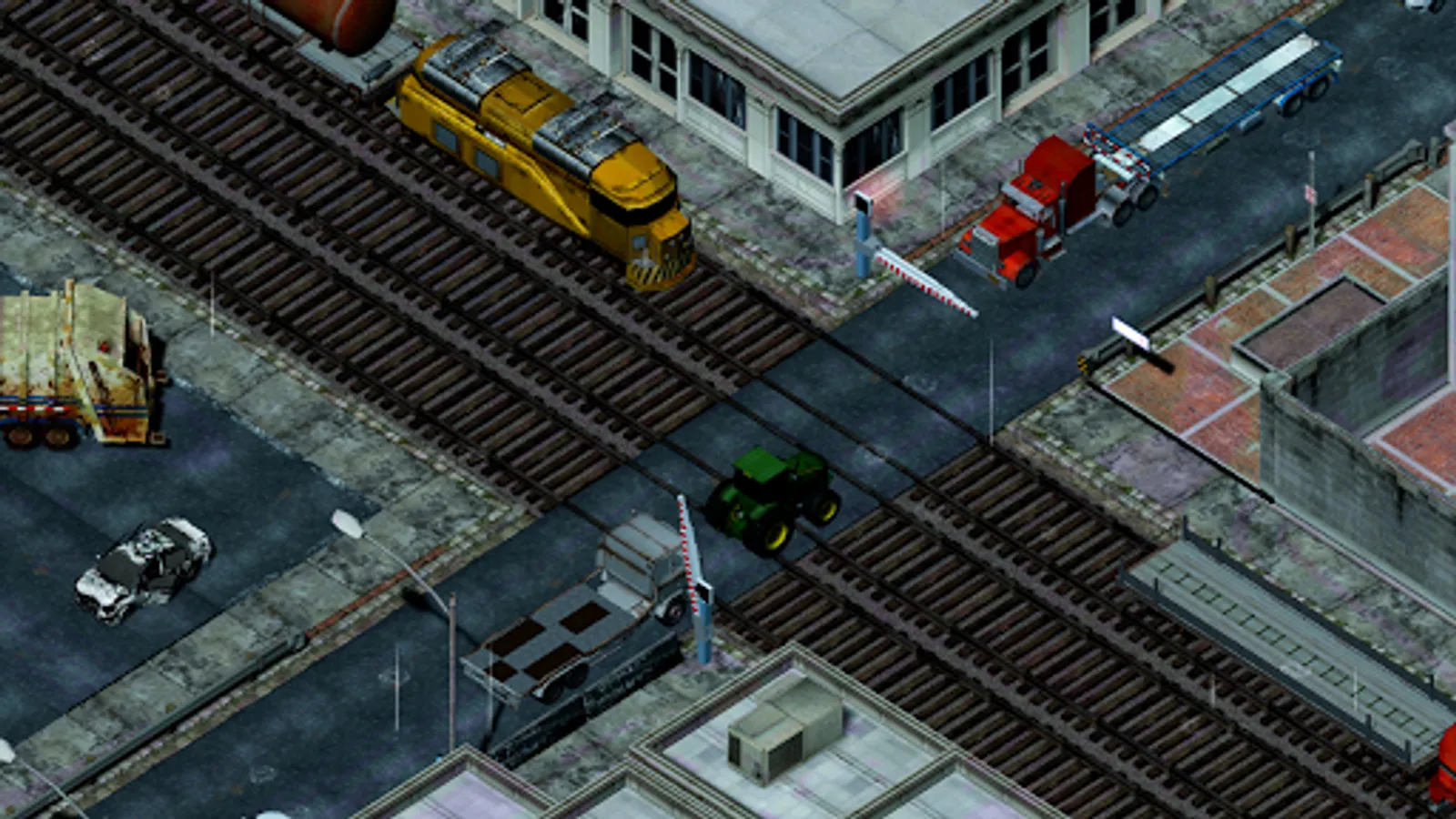 With the awesome train in this train driving simulator you will have lots of fun. But pay attention, railroad crossing is dangerous place and accident at railroad gate are very often. Collision with train can happen any time. Conduct train safely through the crossing. And you don't want to destroy your new sport car or jeep.