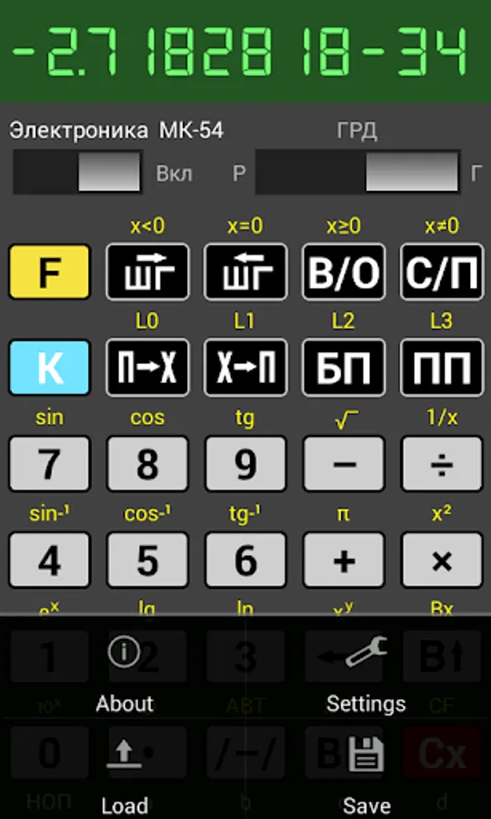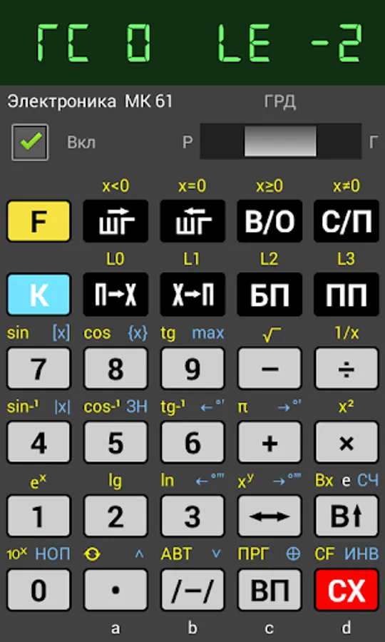 Hint 2: you can choose between MK-61 and MK-54 using menu option that becomes visible when calculator is switched off.