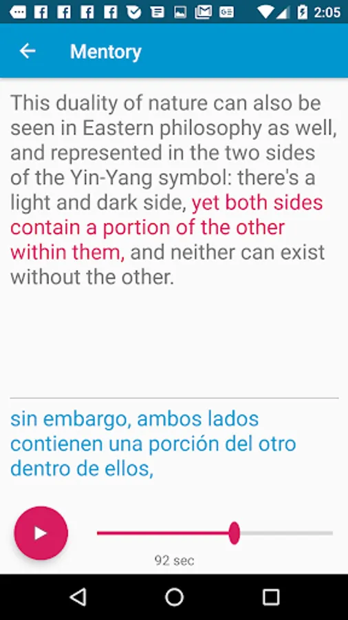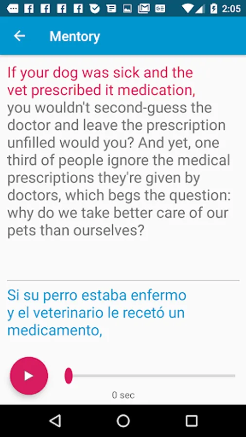 Mentory is the app that allows you to read and listen to current issues in English and at the same time have the translation in Spanish. The audios are created by native speakers of the United States, which will allow you to improve listening and increase your vocabulary quickly.